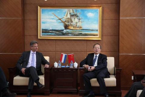 Before the meeting, President Peter van Dongen and Head Frank Audenaerde had a meeting with representatives of students majoring in Sino-Dutch Mechatronic Engineering College. From the meeting with students, hey knew the learning and living condition of the students and answered to the questions about the Sino-Dutch cooperative projects raised by students.