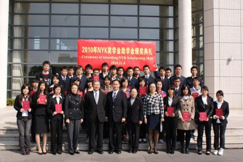 On November 4, Ceremony of Awarding SMU - NYK Prize 2010 was held. Prof. Jin Yongxing, SMU Vice President and Mr. Takao Ito, NYK China Chief Representative attended the ceremony. Prof. Jin Yongxing expressed congratulations to prize winners and hopes that they shall work harder and make greater progress. Mr. Takao Ito briefed on NYK China and expressed his intention to continue in-depth cooperation with SMU. Vice President Jin Yongxing and Mr. Takao Ito issued certificates for prize winners.