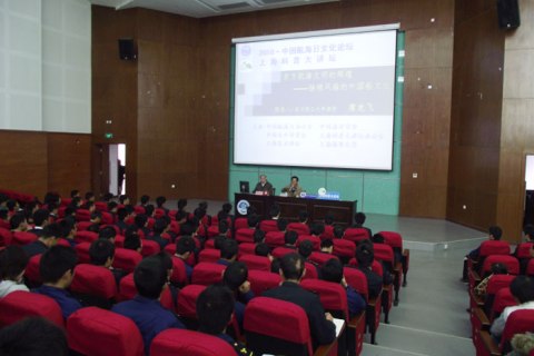 On November 17, co-organized by Office of China Maritime Day, Chinese Society of Oceanography, China Pacific Institute, Shanghai Oriental Rostrum and Shanghai Maritime University, the seventh Report of 2010 China Maritime Day Cultural Forum was held at SMU. Prof. Xi Longfei from Wuhan University of Technology, Honorary President of Chinese Maritime History Studies institute delivered a speech titled “Glorious Oriental Navigation Civilization- the Dominant Chinese Ship Culture” to over 400 students and teachers.