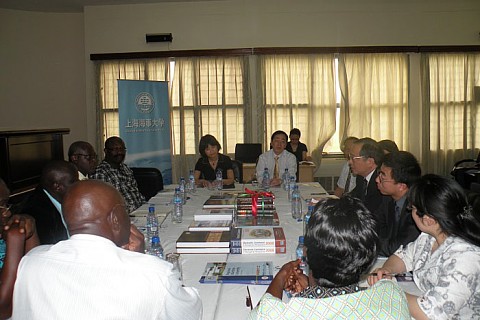 On March 8, a seven people delegation headed by Prof. Yu Shicheng, President of SMU visited the Regional Maritime University (RMU) Accra, Ghana and was warmly received by Mr. Alock Asamoah, President of RMU.