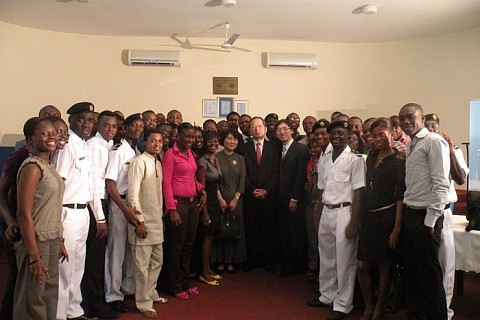 Mr. Michael Luguje, representative of The United Nations International Maritime Organization (IMO) in Africa, Ms. Dzifa Aku Attivor, Minister of Transport of Ghana, Mr. Gong Jianzhong, Ambassador of People’s Republic of China in Ghana, Mr. Magnus Teye Addico, Secretary-General of Maritime Organization of Central and West Africa, Ms. Du Huifang, Deputy Director of Shanghai Municipal Education Commission, Prof. Yu Shicheng, President of SMU, Mr. A.K.Asamoah, President of RMU, representatives of port and shipping companies in central and west Africa as well as teachers and students representatives of the project attended the inauguration.