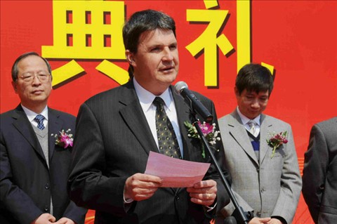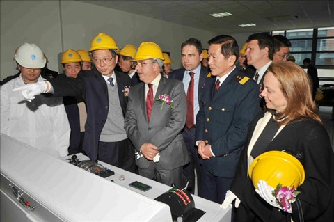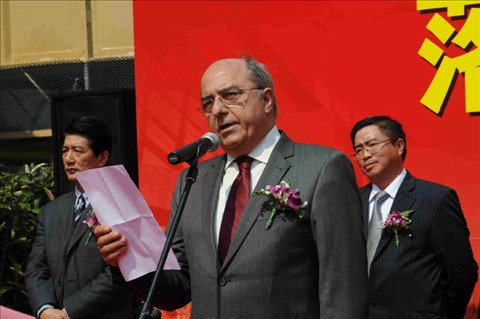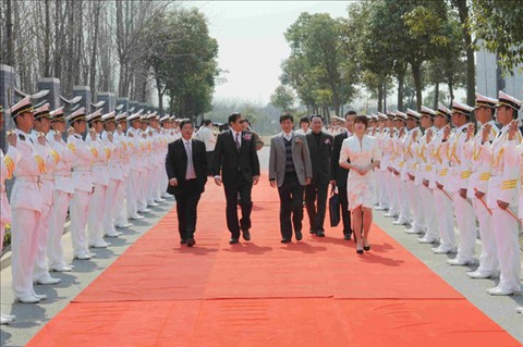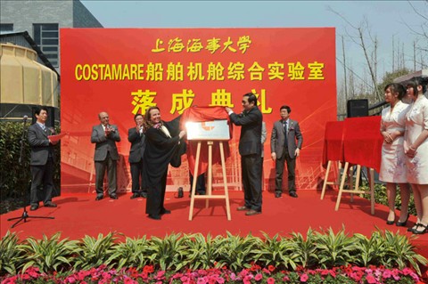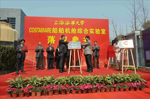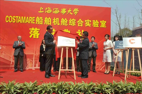 Mr. Zhang Xiaowen, Deputy Inspector of Comprehensive Planning Department, the Ministry of Communications, Mr. Xu Guoyi, Director of Shanghai Maritime Safety Administration, Mr. Huang Zhen, Vice President of Shanghai Jiao Tong University, Ms. Maria Saranti, Consul General of Greece in Shanghai, representatives of cooperative enterprises including Costmare Shipping, MAN Diesel & Turbo, Alfa Laval Technologies, Shell Marine Products, Taiko Kikai Industries, and SINOPEC Shanghai attended the ceremony in the Lingang new campus of SMU.