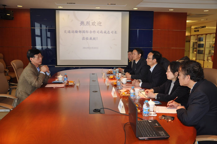 On February 22, Mr. Ju Chengzhi, Director-General of the Department of International Cooperation of the Ministry of Transport of the PRC paid a visit to SMU. Prof. Yu Shicheng, Chairman of SMU University Council, Prof. Huang Youfang, President of SMU, Prof. Jin Yongxing, Vice President of SMU as well as Prof. Xiao Baojia, Vice President of SMU gave the distinguished guests a warm reception. Prof. Huang Youfang, Prof. Jin Yongxing, and leaders of relevant departments also had a discussion with Mr. Ju Chengzhi.