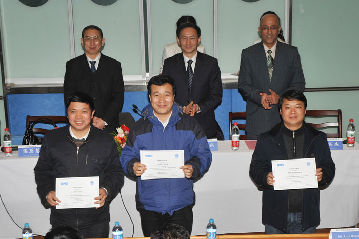 Mr. Mahapatra, Mr. Chang Fuzhi and Prof. Jin Yongxing awarded the Certificates of Completion to the 40 students. The certificates were issued jointly by IMO and the Maritime Safety Administration of the PRC.