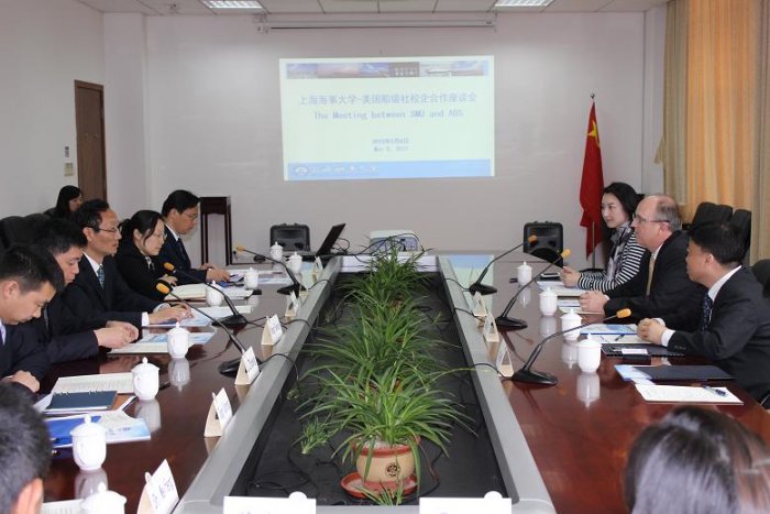 On the morning of May 8, Mr. Richard Pride, President and COO (Chief Operating Officer) of ABS (American Bureau of Shipping) Greater China Division paid a visit to Lingang campus of SMU. Prof. Huang Youfang, President of SMU, Prof. Kong Fancun, Deputy Secretary of the Party Committee and Vice President of SMU as well as leaders of relative departments and colleges gave the guests a warm reception.