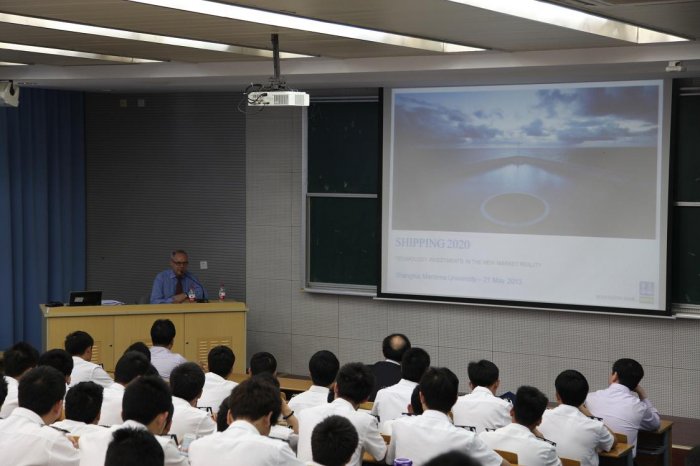 According to the global economy and transport demand, the development tendency of shipping regulations and technology, Mr. Joerg Beiler described the new technology and direction for the development of global shipping industry that might appear from 2012 to 2020 by using simulation models and data. After the lecture, Mr. Joerg Beiler answered the questions put forward by SMU students in detail.