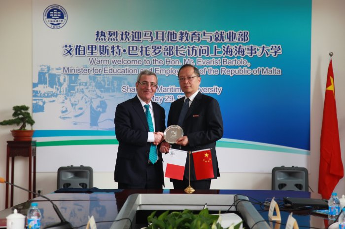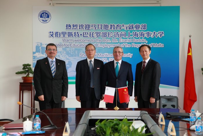 On May 29th, the Hon. Mr. Evarist Bartolo, Minister for Education and Employment of the Republic of Malta, and Prof. Juanito Camilleri, Rector of University of Malta visited Shanghai Maritime University. Prof. Yu Shicheng, Chairman of University Council of SMU, Prof. Jin Yongxing, Vice President of SMU, and heads of related offices and departments met with the guests.