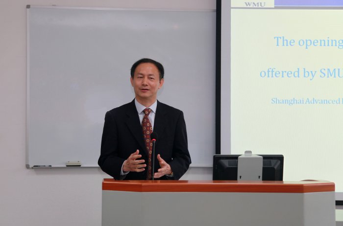 Mr. Mashuo, Vice President of WMU delivered the welcoming speech. He expressed that WMU and SMU had a solid foundation for cooperation, and the Class aimed to cultivate a number of highly qualified talents who excelled at shipping finance, push forward the development of Shanghai International Financial Center, and satisfy the immediate requirements of qualified talents on international shipping finance in Shanghai, China or even the whole Asian market.