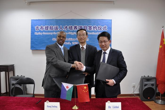On January 3rd, the Signing Ceremony for Djiboutian Shipping Talents Educational Program between Shanghai Maritime University and the Republic of Djibouti was held at SMU. H. E. Mr. Abdallah Abdillahi Miguil, Ambassador of the Republic of Djibouti in China, Mr. He Liehui, President of Touchroad Group, Prof. Huang Youfang, SMU President, Prof. Jin Yongxing, SMU Vice President, and leaders from relative departments attended the ceremony.