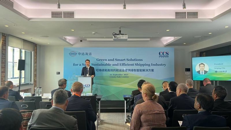 On September 16, during the 12th London International Shipping Week (LISW2025), China COSCO Shipping Corporation Limited and the China Classification Society (CCS) jointly hosted a thematic forum titled “Green and Intelligent Solutions for a Safe, Sustainable, and Efficient Shipping Industry.”