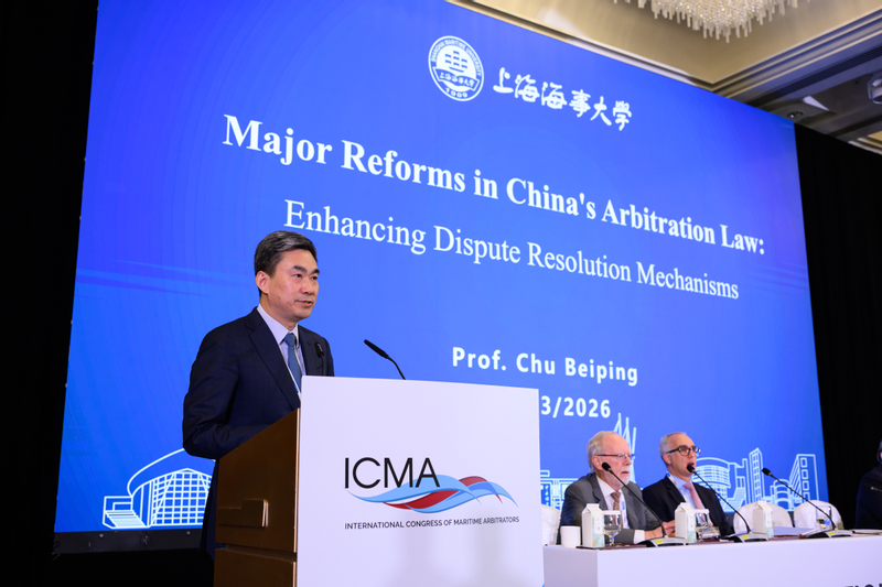 From March 22 to 27, Chu Beiping, President of Shanghai Maritime University, led a five-member delegation of faculty representatives from the School of Law to Singapore at the invitation of the organizers to attend the 23rd International Congress of Maritime Arbitrators (ICMA). During the plenary session, he delivered a keynote address. Shanghai Maritime University served as a supporting organization for the congress.